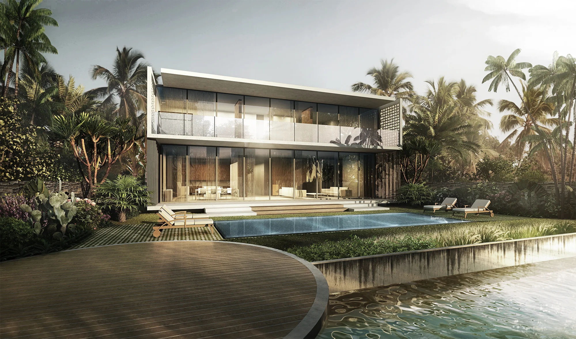 “The two resulting rectilinear volumes appear to float, one above the other, the other above the ground. This sense of lightness is further enhanced by the detached porous screen, an often times forgotten element of modernism that we revisit with contemporary language. As a functional ornament it provides visual and climactic screening while allowing plays of light at the interior and an opportunity to engage the tropical climate.”