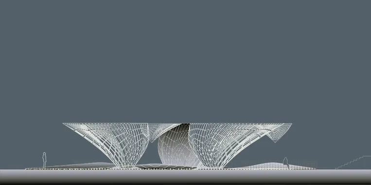 “Our proposal for the temporary pavilion was primarily focused on re-threading and re-directing existing pedestrian trajectories to the future site of the Ballet. By employing a series of markers or cues the pavilion suggests a moment of meander and repose to experience the urban grounds of the new Ballet.”